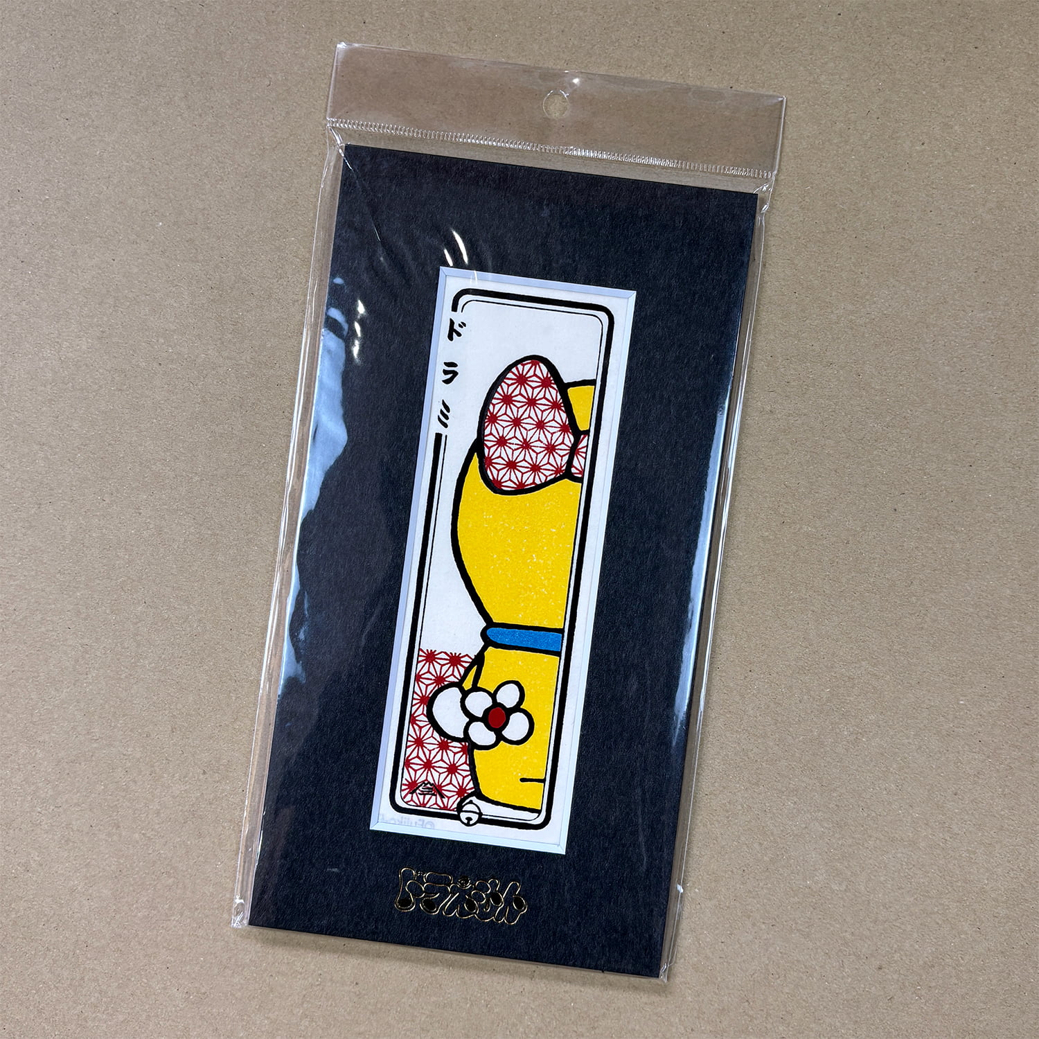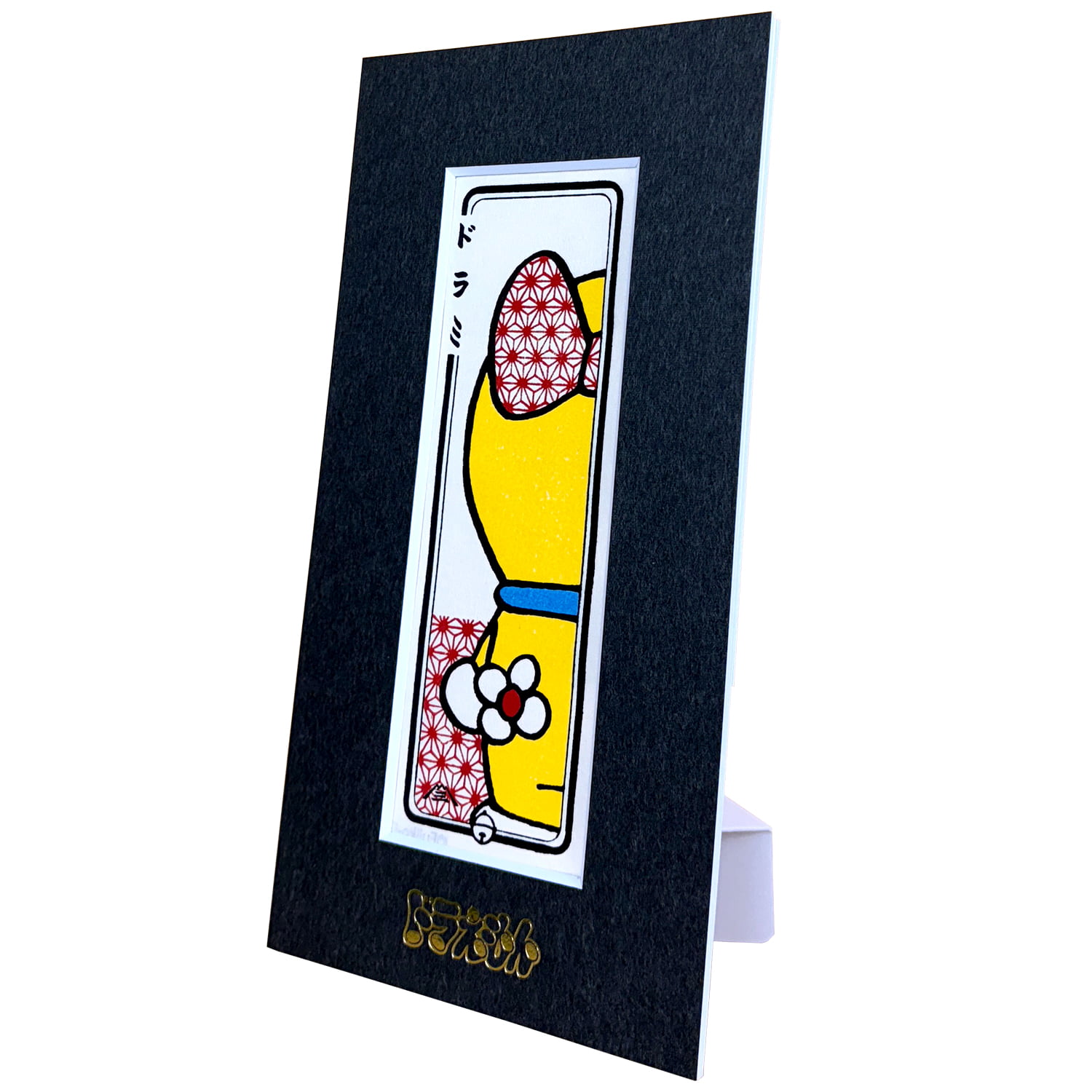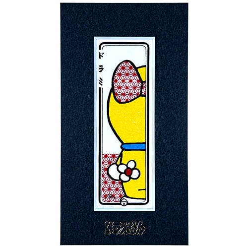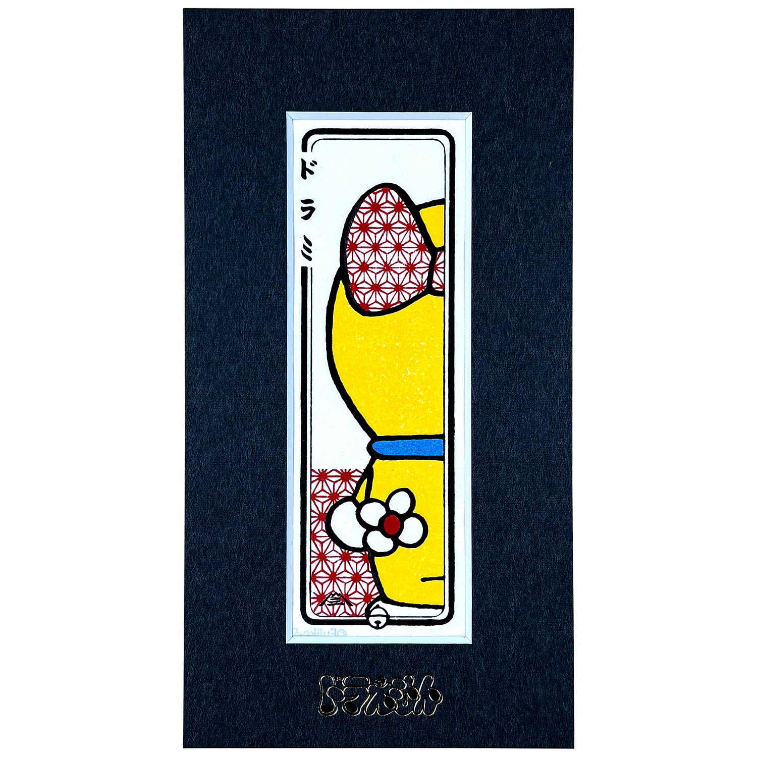 伝統文様の【麻の葉】をモチーフに、ドラミちゃんの可愛らしい後ろ姿が描かれた小型の浮世絵木版画。 リボンも麻の葉柄でデザインされ、浮世絵らしい仕上がりになっています。