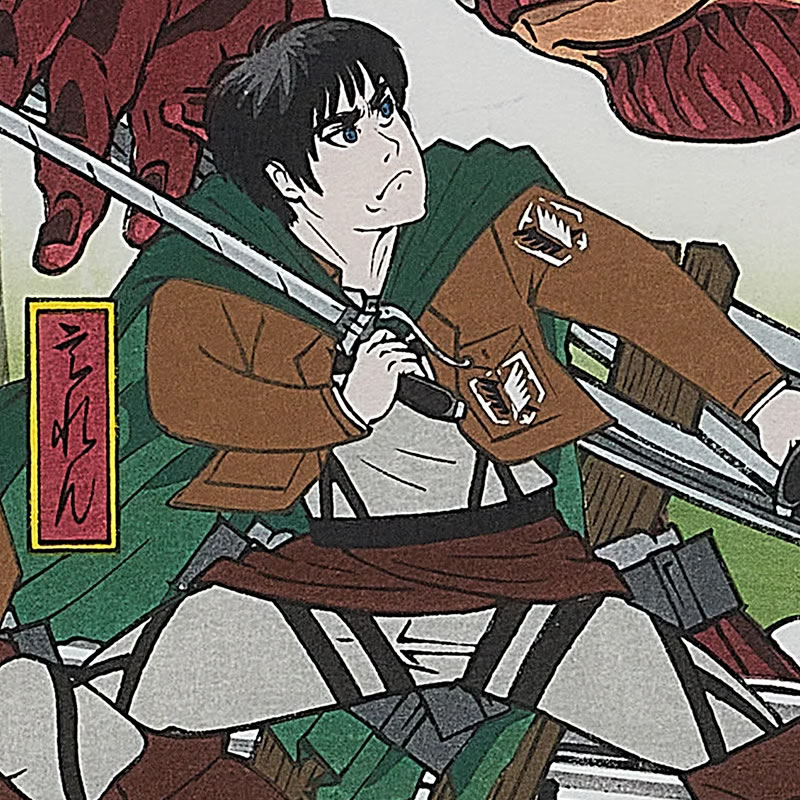 全世界で人気の高い「進撃の巨人」とコラボした浮世絵木版画です。