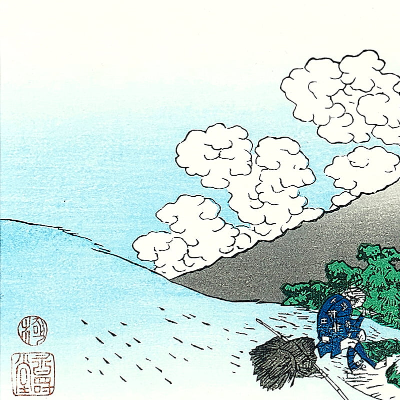 木版画の彫摺は江戸伝承の古法による純手彫り純手摺りで、木板の表面に僅か1mmという世界で線を浮かび上がらせ一色ごとに手摺りで和紙に色付けていく伝統的な印刷技法により仕上げられています。