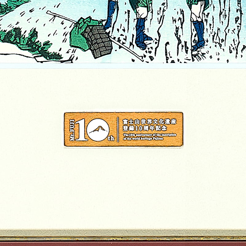 版三では10周年を記念して富士山を様々な角度から描き上げた葛飾北斎の『富嶽三十六景』の中から選りすぐりの作品、また、歌川広重の『東海道五拾三次』の中から富士山が描かれた作品に「富士山世界文化遺産登録10周年記念」のプレートを付けた復刻版をそれぞれ30点限定で販売いたします。