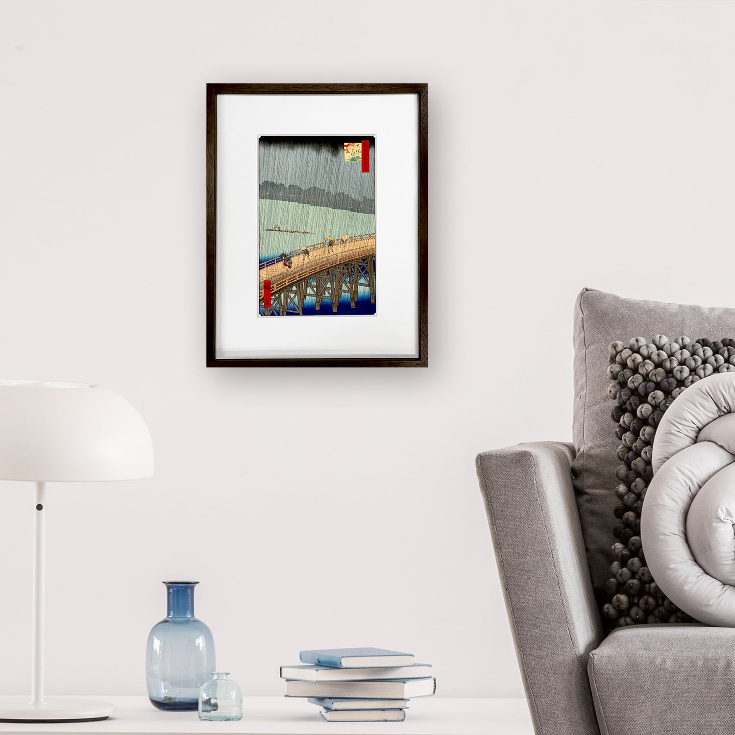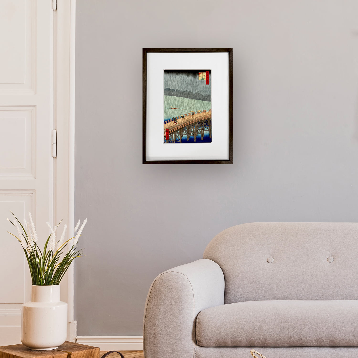 当時と変わらない美しい色彩と温かみのある風合いが再現された浮世絵木版画を版三が厳選した特製の額(オプション)に入れてお届けいたします。
