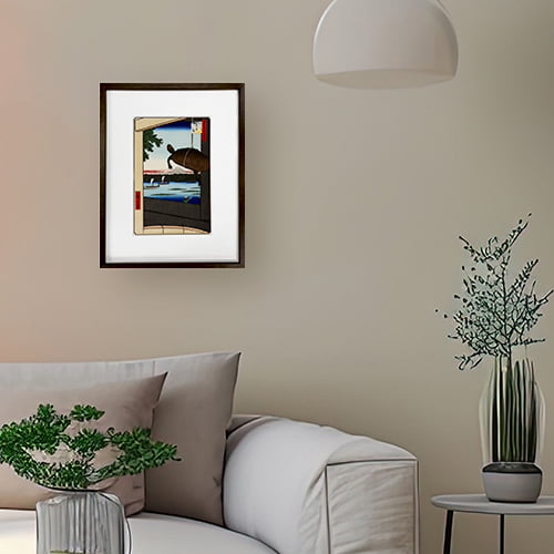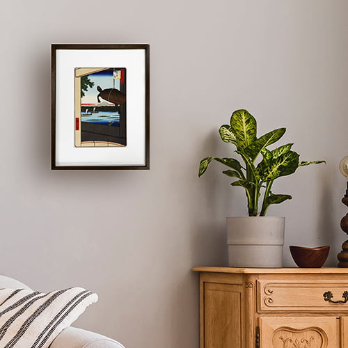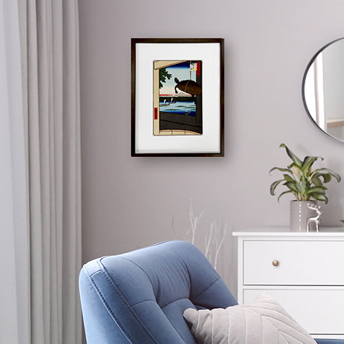 当時と変わらない美しい色彩と温かみのある風合いが再現された浮世絵木版画を版三が厳選した特製の額(オプション)に入れてお届けいたします。