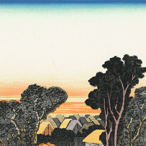 その後も「東海道」シリーズや「木曾海道六拾九次之内」、「冨士三十六景」など名所絵を数多く手掛け、その抒情詩的な作風はゴッホやモネなどの西洋の画家にも影響を与えました。また、風景画だけでなく花鳥画や戯画作品など他ジャンルでもその名は知られています。