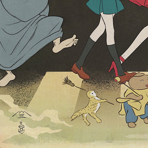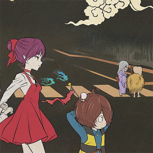 この作品では、「百鬼夜行」や「付喪神絵巻」の世界観と、ビートルズの『Abbey Road』の構図を組み合わせ、現代と伝統の交差点のようなイメージを表現しました。