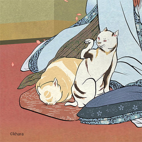 猫は可愛らしさと同時に、キャラクターを象徴する存在としてそばに添えました。
