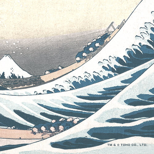 「神奈川沖浪裏」はダイナミックな構図や静と動の対比が圧巻の一図で、シリーズ三役の一つに数えられ、画家ゴッホが激賞したことでも有名な作品です。 本作では、この北斎の名構図をベースに、ゴジラという“災害級の存在”を融合させることで、新たな迫力と物語性を生み出しています。