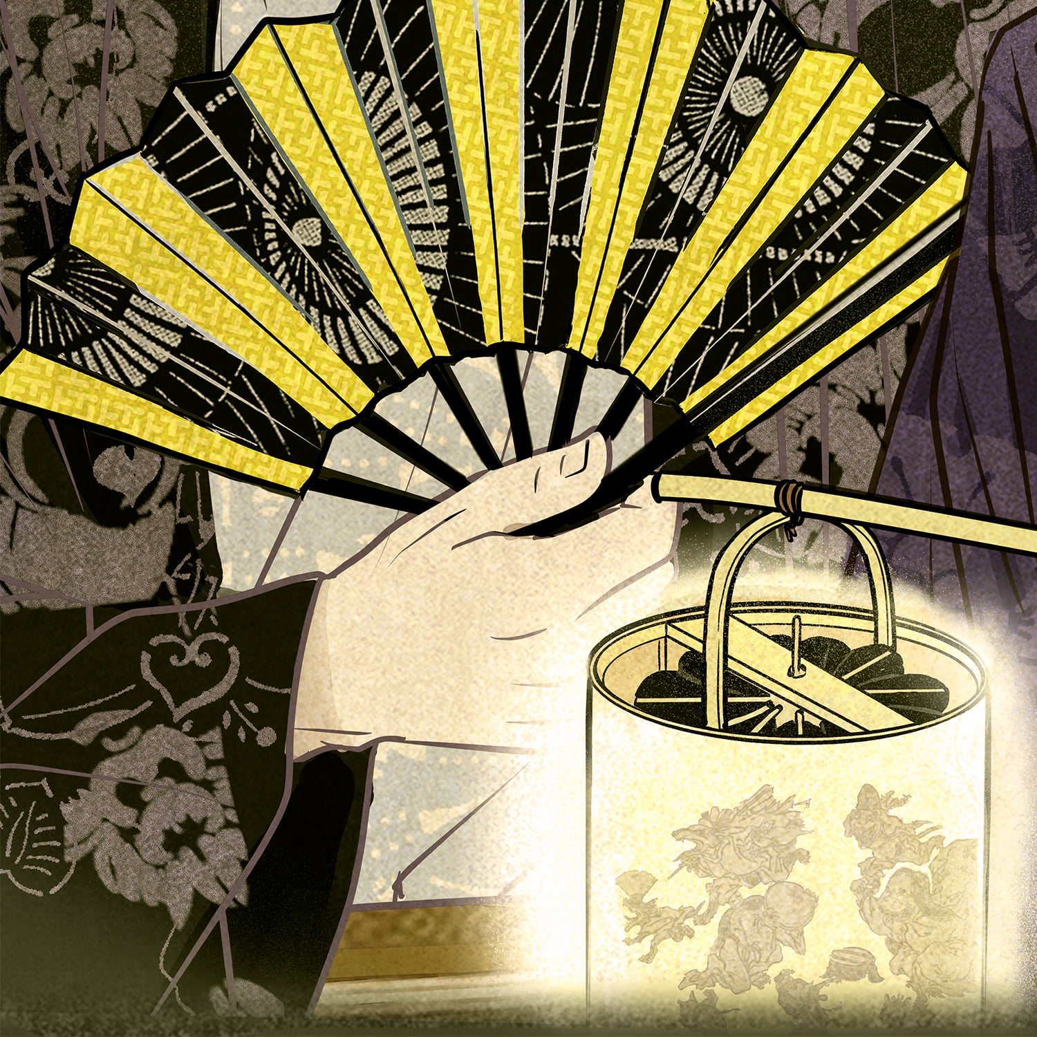 「当盛花之顔菖蒲」の菖蒲を背景に、和装姿の二人が穏やかな時間を共有する情景を描き、妖しくもどこか人間味のある世界観を表現しています。