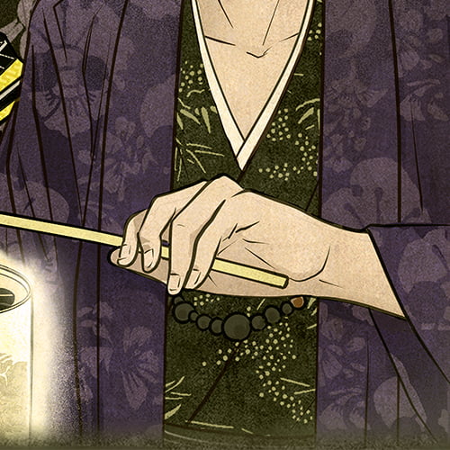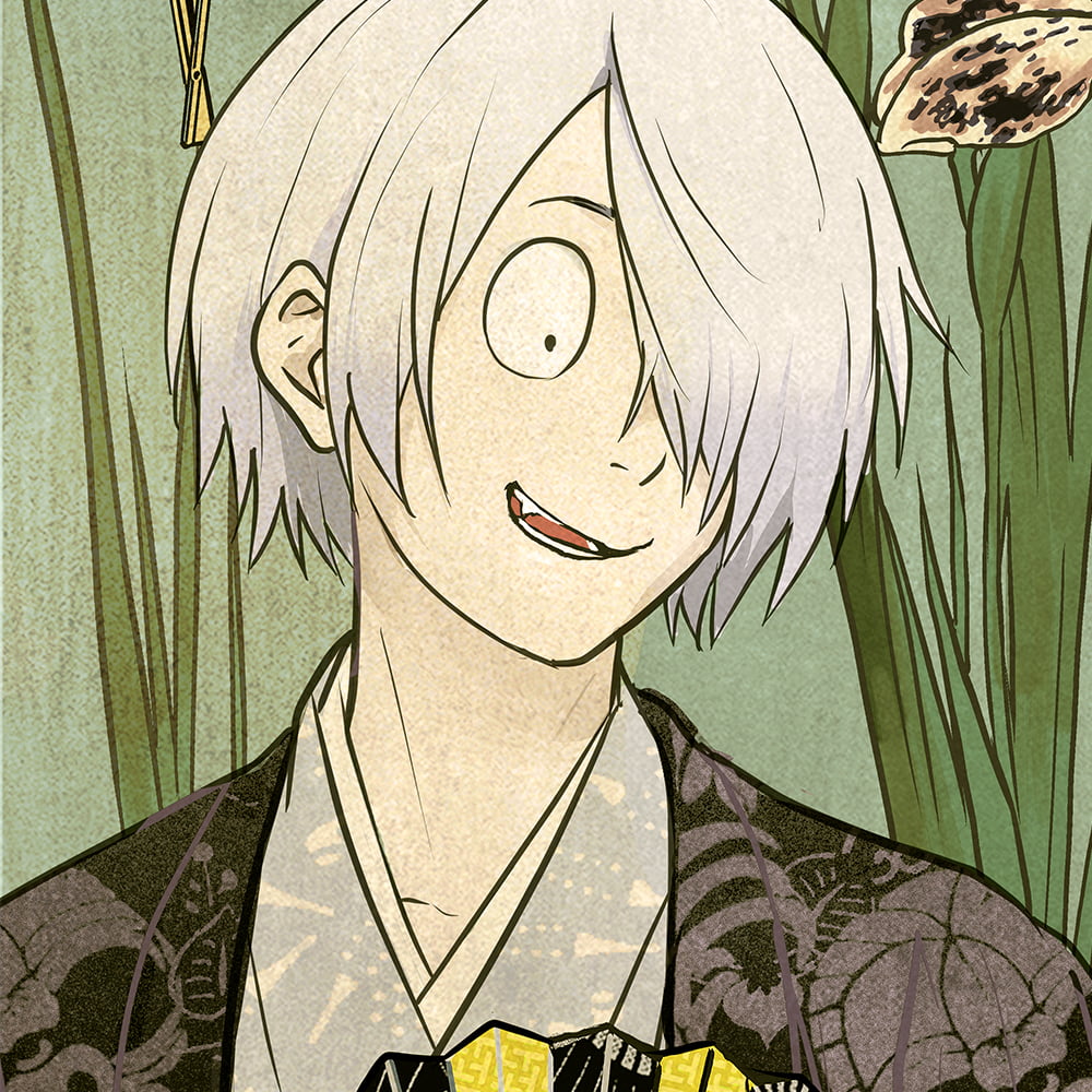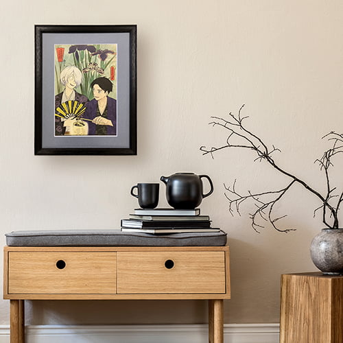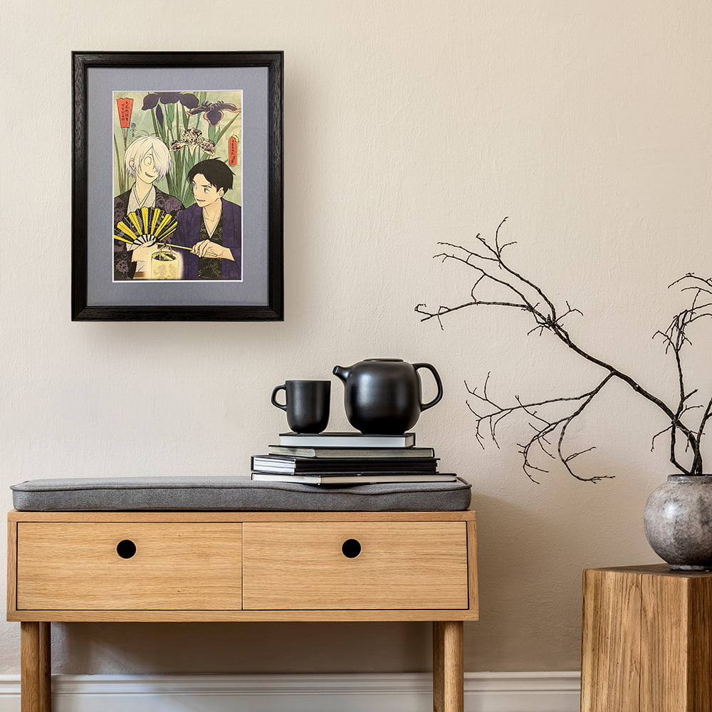 映画『鬼太郎誕生 ゲゲゲの謎』より、鬼太郎の父と水木の友情を描いた作品。 “奇跡の合作”浮世絵をモチーフとし、菖蒲を背景に和装姿の二人が穏やかな時間を共有する情景を描いています。