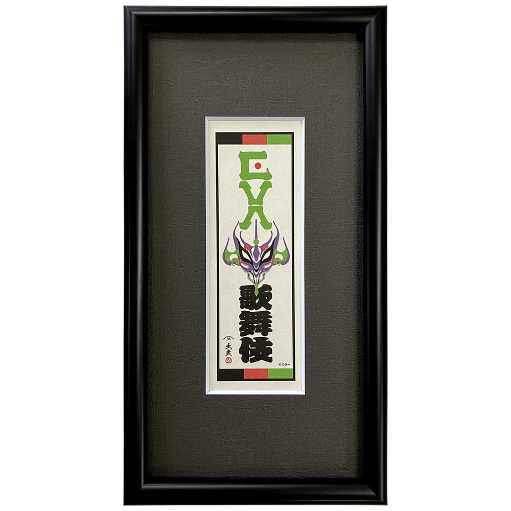 「歌舞伎交響曲第急番 エヴァンゲリオン」実施記念として、機体の象徴的カラーを歌舞伎の隈取意匠へ昇華し、江戸以来の千社札様式に落とし込んだ作品。