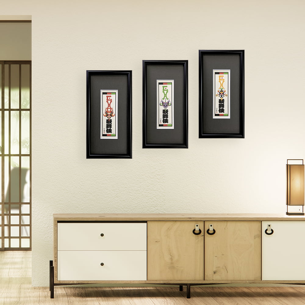 上部の意匠、中央の隈取、下部の力強い題字が縦軸で連動する構成とし、伝統美とエヴァの革新性が自然に“シンクロ”するバランスを追求しました。