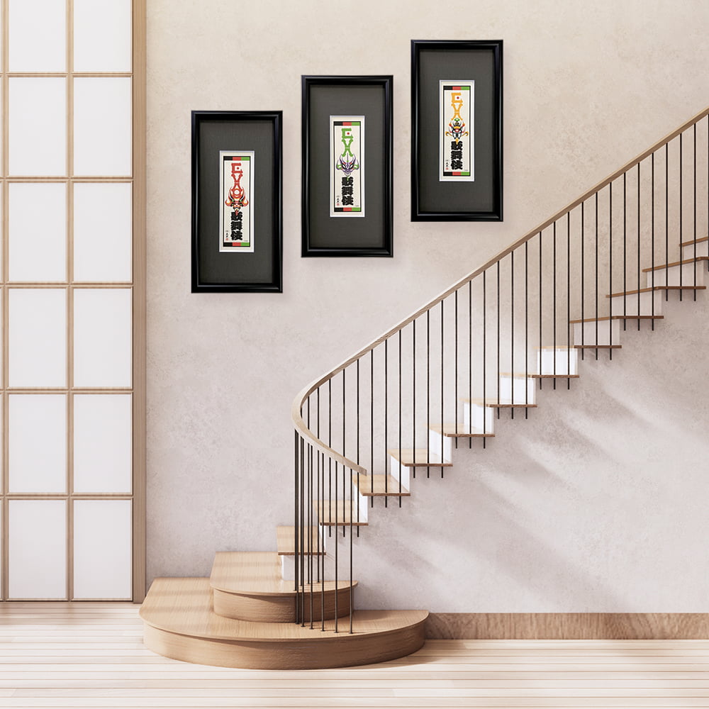 弐号機の象徴的なカラーリングを歌舞伎の隈取文様へと昇華し、江戸時代より参拝の証として親しまれてきた千社札の様式美に落とし込みました。